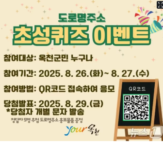 옥천군 26~27일 '도로명주소 바로알기 초성퀴즈'