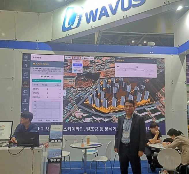 24일부터 26일까지 3일간 일정으로 고양 킨텍스 제1전시장에서 공간정보 플랫폼 전문기업 ㈜웨이버스(대표 김학성)는 공간정보 기반 행정지원 솔루션 ‘지온시티 기술을 전시했다. 지온시티는 웨이버스가 자체 개발한 클라우드 2D 공간정보 플랫폼 ‘지온파스(GeOnPaaS)’와 3D 디지털 트윈 플랫폼 지온디티(GeOnDT)를 바탕으로 하는 설치형 서비스 패키지로, 30개의 세부 서비스로 구성돼 지자체와 공공기관의 현장 실무에 맞춰 선택적으로 적용할 수 있다. 이 솔루션은 ▲재난 대비 ▲시설물 관리 ▲도시계획 ▲도심항공교통(UAM)·드론 등 7개 분야에 걸쳐 실시간 화재감지 서비스와 도시계획 관리 서비스, 측량성과 관리 서비스, 도로점용 인허가 서비스, UAM 항로 시뮬레이션, 지하 배관 매설 3D 시뮬레이션 등을 제공한다.