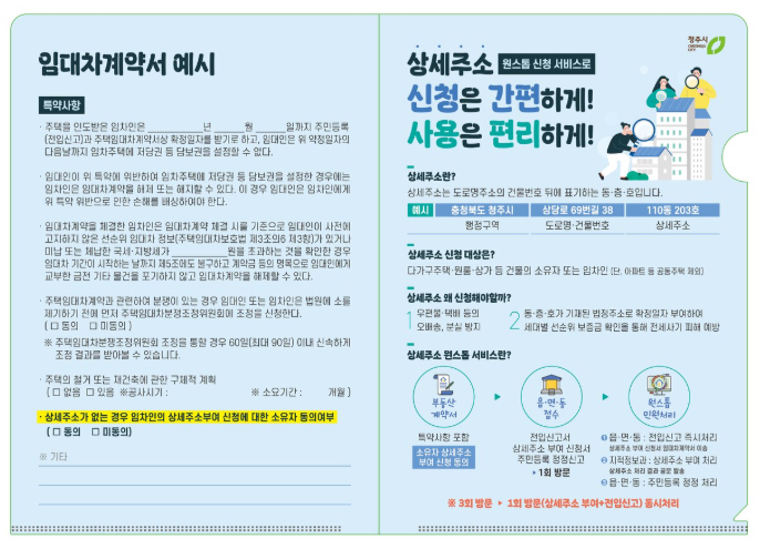 청주시, 다가구주택 상세주소 내년 전면 시행충북 청주시가 전세 사기 예방과 응급구조, 복지 사각지대 해소 등에 도움이 될 다가구주택 상세주소 부여를 내년부터 전면 시행하기로 했다. 시는 이달 1일부터 다가구주택 임차인의 주소 사용 편의와 권리 보호를 위해 ‘상세주소 원스톱 서비스’를 일부 지역에서 시범적으로 시행한다고 17일 밝혔다. 시범 지역은 용암2동과 수곡1동, 복대2동, 산남동, 사창동 등 5곳으로 내년부터 전면 시행에 들어간다. 상세주소는 도로명주소의 건물번호 뒤에 표시되는 동과 층, 호 등 정보(법정 주소)를 말한다. 이는 지난해 7월 ‘주민등록법’ 시행령이 개정되면서 상세주소 표기가 의무화됐다. 상세주소가 주민등록 등본이나 초본에 기재되면서 전세 사기 등이 발생했을 때 임대인의 구체적인 거주지 등이 확인되면서 권리 구제 등이 확장됐다.