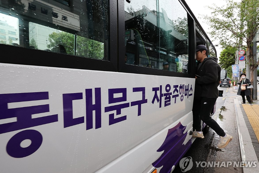 동대문 자율주행버스 운행 시작14일 서울 동대문구 장한평역 앞 버스정류소에서 시민이 자율주행버스에 탑승하고 있다. 이날부터 운행을 시작한 동대문 자율주행버스 '동대문A01'은 장한평역에서 경희의료원까지 이어지는 왕복 15㎞ 구간, 총 23개 정류소를 운행한다.