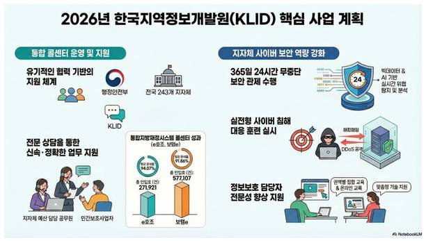 한국지역정보개발원 2026년 정보화 사업 계획 340억 이상 투입한국지역정보개발원(KLID)은 2026년도 주요 정보화 사업을 2일부터 본격 추진하며 지자체 행정 시스템의 안정적 운영과 AI 기반 행정 혁신에 나선다. KLID는 통합지방재정시스템과 지방보조금관리시스템 운영·유지관리에 184억 원을 투입해 법·제도 변화에 대응하고, 콜센터 운영을 통해 지자체 이용 지원을 강화한다. 지자체 행정정보시스템을 상시 모니터링하는 통합정보자원관리시스템을 통해 장애 대응과 기술 지원 체계도 고도화한다. AI 분야에서는 CCTV 관제지원시스템 구축 2단계 사업을 추진해 침수·산불 등 재난 상황을 자동 탐지하는 기술을 실증한다. 아울러 공영자전거, 도서관 등 생활 밀착형 데이터를 수집해 전국 단위로 개방하는 통합데이터 개방 사업도 확대한다. 공공빅데이터 표준분석모델을 정립해 지자체가 데이터를 쉽게 분석·활용할 수 있는 환경도 마련한다. 이와 함께 통합콜센터, 교육관리시스템, 내부 경영정보시스템 등 기관 운영 인프라를 안정적으로 유지한다. KLID는 각 사업에 대한 감리 용역을 병행해 품질을 확보하고, 디지털 지방정부의 안정성과 데이터 기반 행정 서비스 강화를 목표로 2026년까지 사업을 단계적으로 추진할 계획이다. |